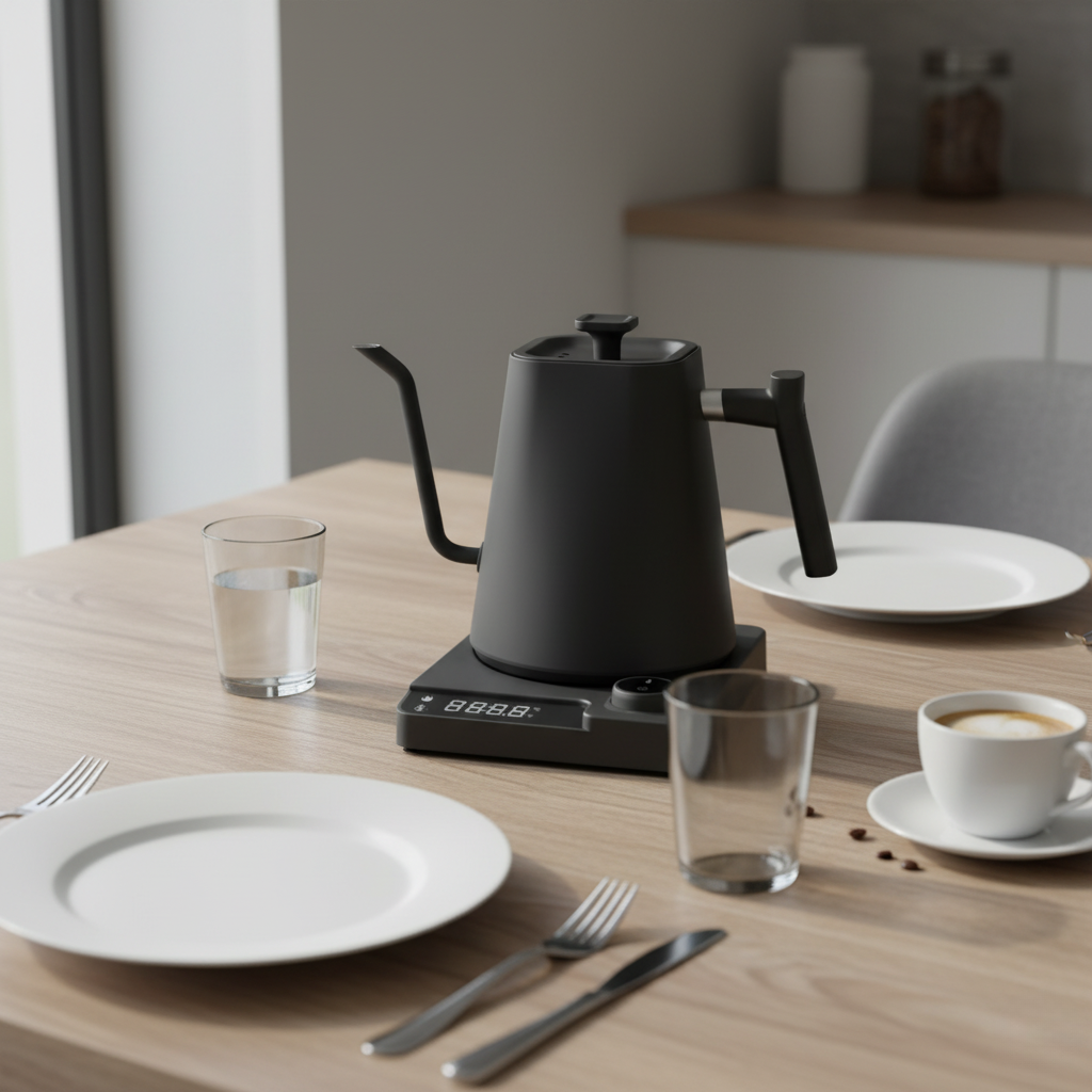 • Design à col de cygne (gooseneck) : un versement fluide et précis, idéal pour le slow coffee ou les infusions délicates.