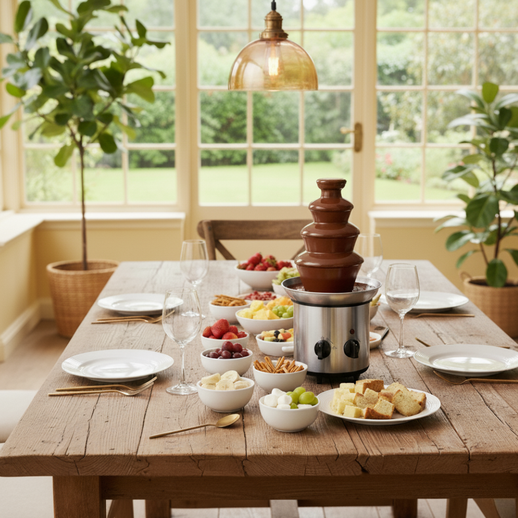 Offrez un instant de pur bonheur gourmand à vos invités avec cette fontaine à chocolat Saveurio – l'accessoire indispensable pour un dessert spectaculaire et inoubliable !